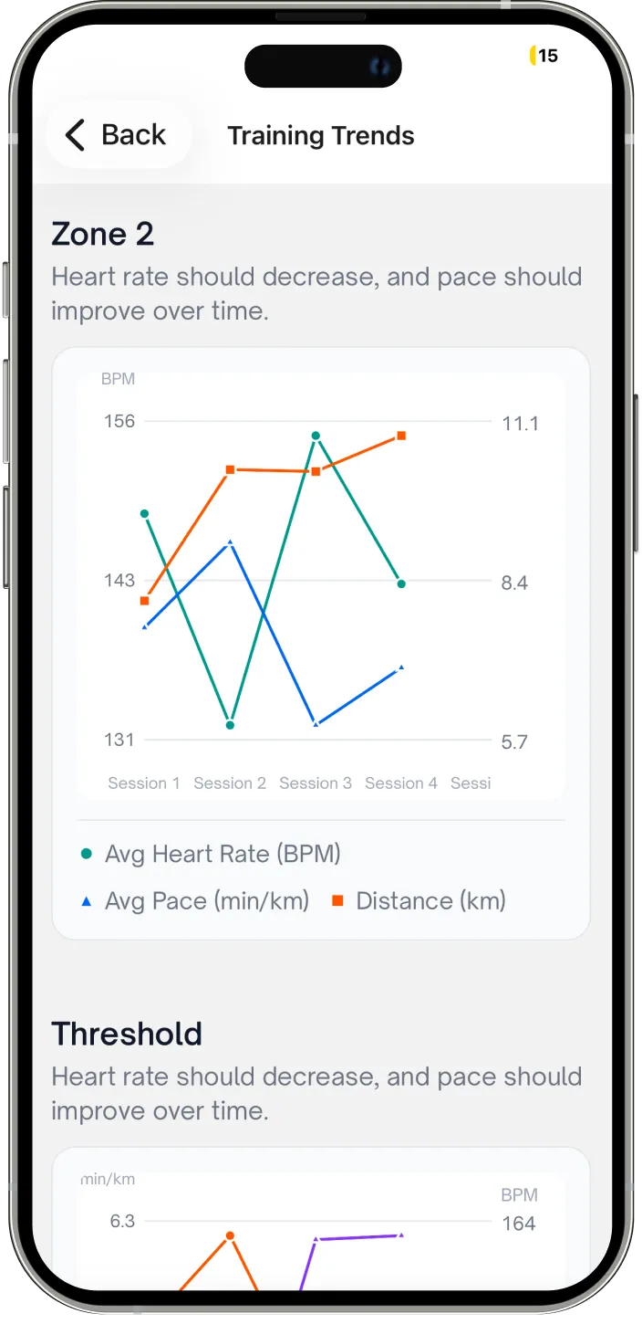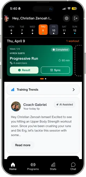 Get a 12-week personalized training plan (adjusted weekly based on your progress), AI coach support, and weekly feedback.